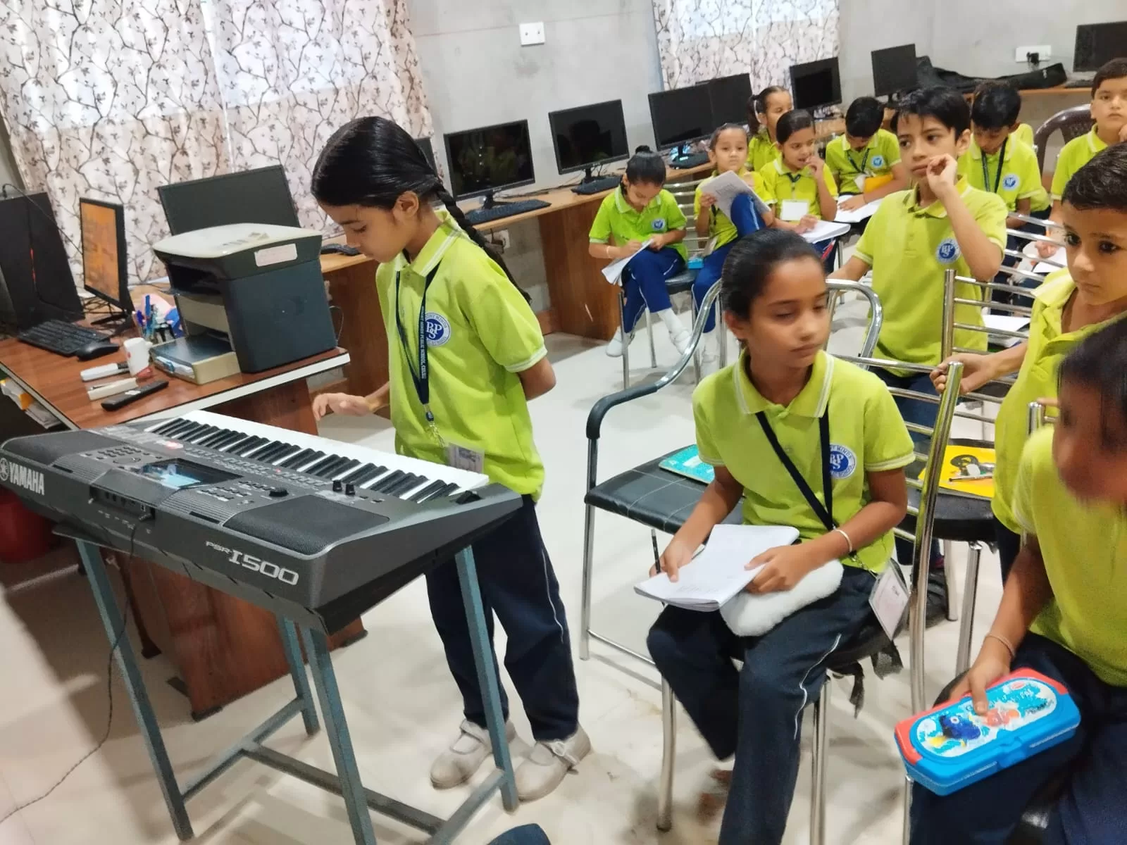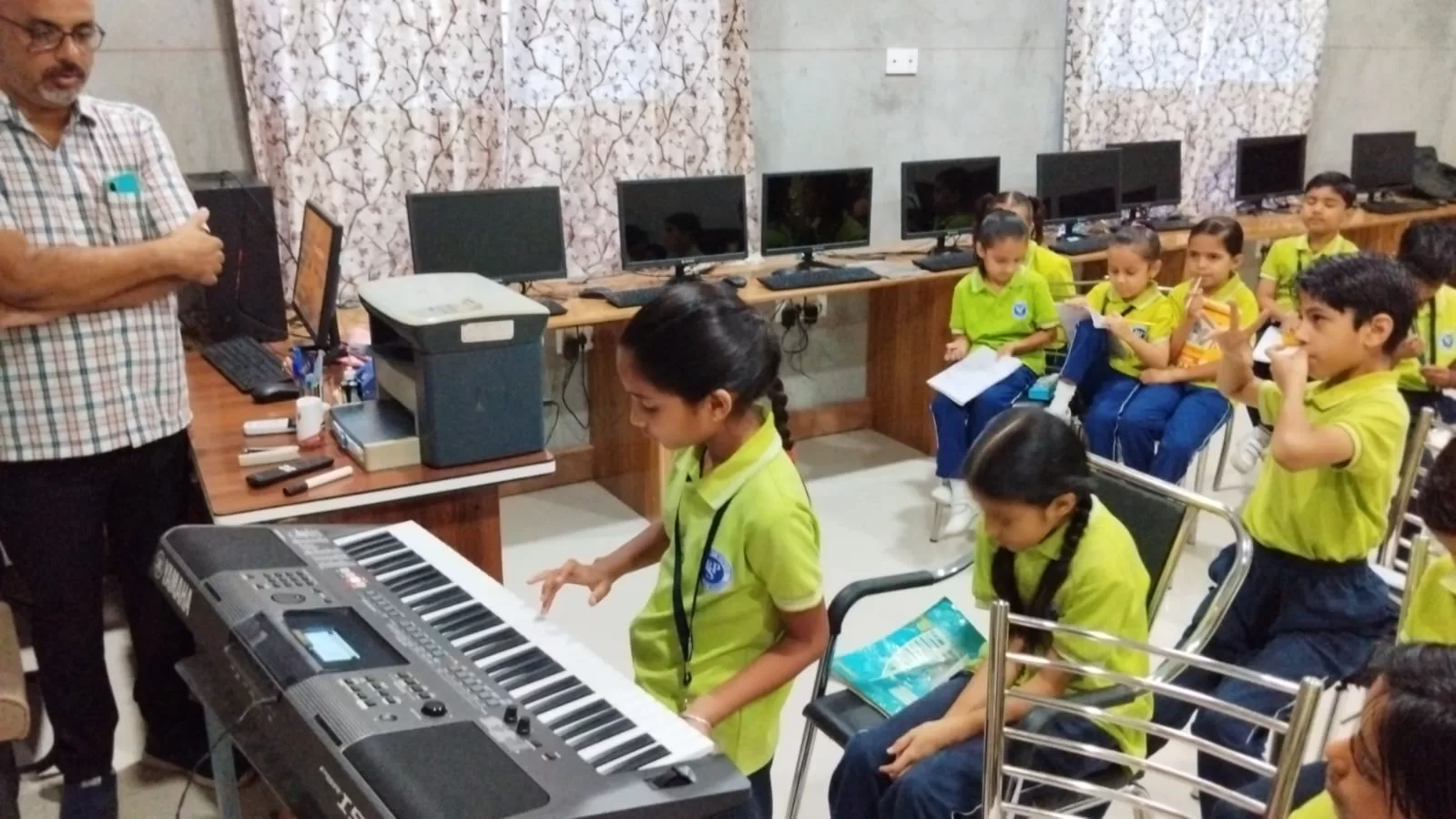 Our school organized a Saturday enrichment activity. It was the fourth Saturday, and all students participated with great joy and excitement. The event included learning to play the keyboard, indoor games like Snakes and Ladders, carrom board, and chess. Outdoors, students enjoyed cricket and badminton, along with creative activities like origami and painting. Dance enthusiasts had the chance to learn Kathak and Zumba. It was a day filled with fun and learning!